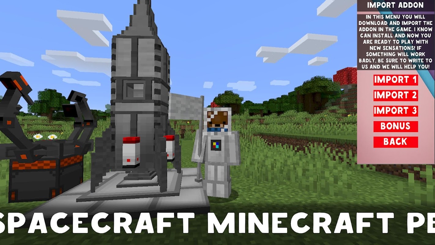 مائن کرافٹ پی ای کے لیے اسپیس کرافٹ موڈ ایک ایڈون ہے جو مائن کرافٹ پی ای کے لیے مختلف اسپیس کرافٹس کو شامل کرتا ہے۔ مائن کرافٹ پاکٹ ایڈیشن کے لیے اسپیس کرافٹ موڈ انسٹال کریں، خوشی منائیں اور دوسرے تمام کھلاڑیوں کو آپ کے خلائی جہاز سے حسد کرنے دیں۔