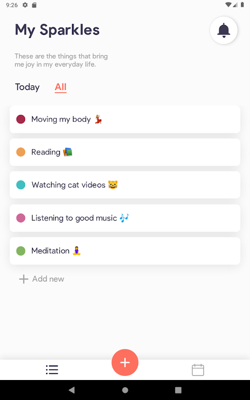 • چمکیلی چیک لسٹ: یہ وہ چیزیں ہیں جو آپ کو خوش کرتی ہیں! عادات کی ایک فہرست بنائیں جو آپ کو دن بدن بہتر اور خوش محسوس کرنے میں مدد فراہم کرتی ہے۔