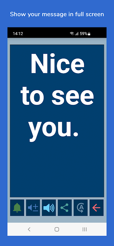 • ایک بڑے فونٹ کے ساتھ آپ کا پیغام دکھانے کے لیے فل سکرین بٹن۔