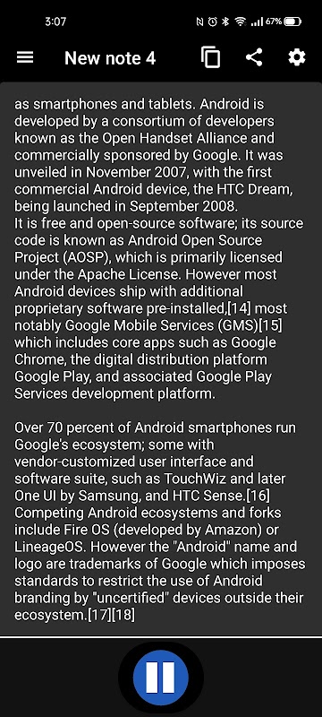 * sharing notes with other apps