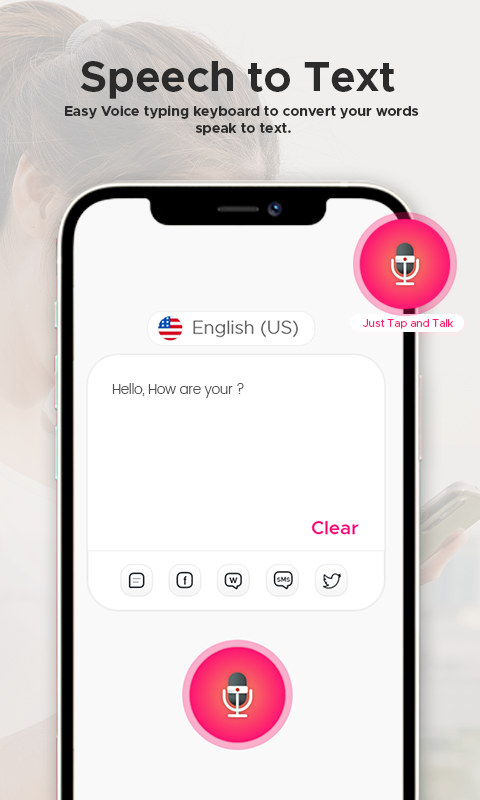 ✓ 🌏 اسپیچ ٹو ٹیکسٹ ایپ چیٹ ٹیکسٹ کے لیے وائس ٹائپنگ میں بھی کارآمد ہے۔