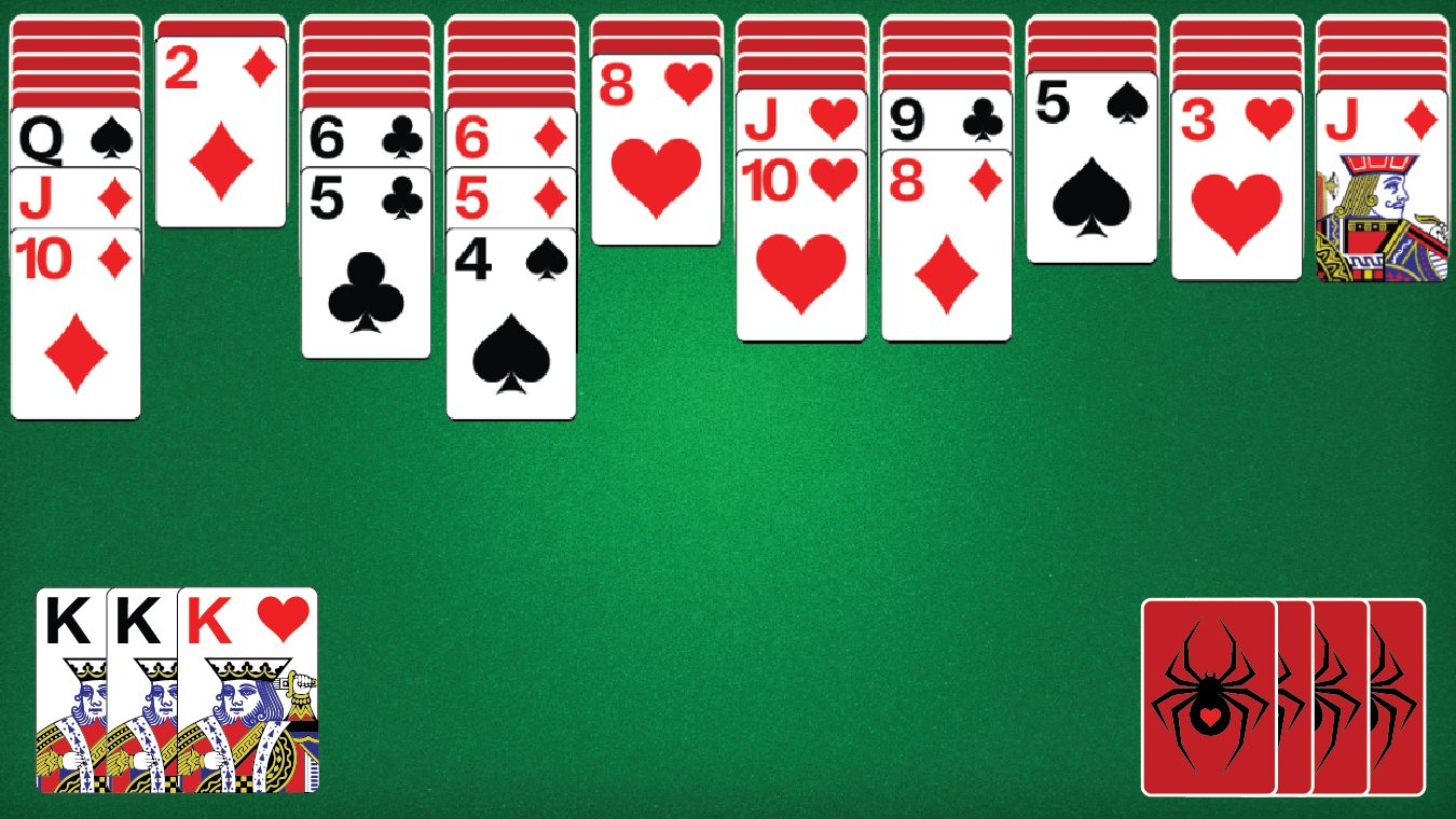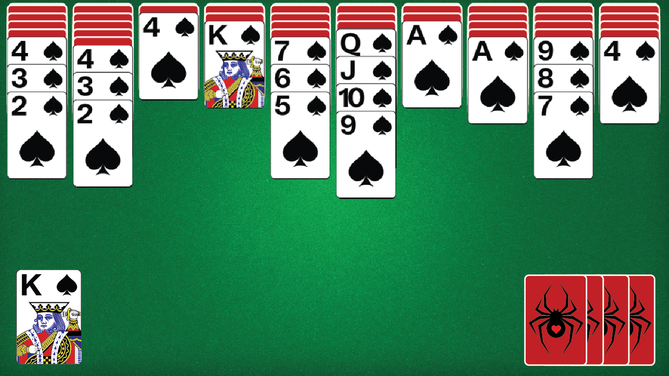 Spider Solitaire games come in 1, 2, 3 & 4 suit varieties