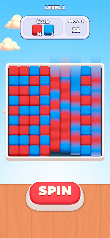 لک کی بنیاد پر اسپن: رنگین بلاکس کے کالموں کو تصادفی طور پر دوبارہ ترتیب دینے کے لیے اسپن بٹن کو دبائیں۔ ہر اسپن ایک نیا چیلنج اور میچوں کا ایک ممکنہ جیک پاٹ پیش کرتا ہے!