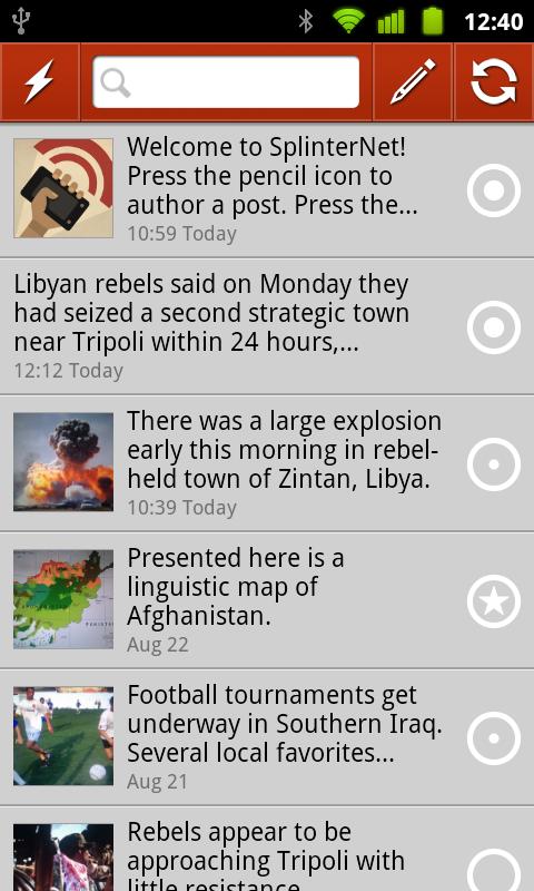 SplinterNet is designed to create an unblockable Twitter like network that uses no cellular or Internet communications. All messages are transmitted over Bluetooth between users, creating a true peer-to-peer messaging system. All messages are anonymous to prevent retaliation by government authorities.