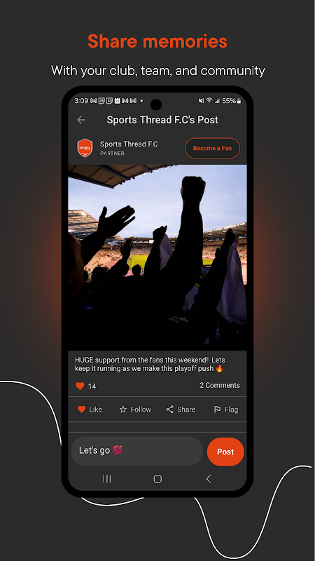 اسپورٹس تھریڈ پہلا ایونٹ سپورٹ سافٹ ویئر ہے جو کمیونٹی کو ذہن میں رکھتے ہوئے ڈیزائن کیا گیا ہے۔ خاندان، دوستوں اور کوچز کے ساتھ اشتراک کرنے کے لیے سرفہرست ڈرامے کیپچر کریں اور انہیں اپنے پروفائل پر پوسٹ کریں۔