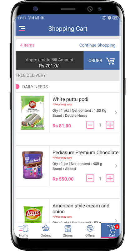 صارفین اپنے پسندیدہ مقامی اسٹور سے گروسری آرڈر کرسکتے ہیں اور مصنوعات کو مقامی اسٹور کے ذریعہ گاہک کے دروازے پر پہنچایا جائے گا۔ مصنوعات کی ادائیگی براہ راست اسٹور پر کی جاسکتی ہے۔