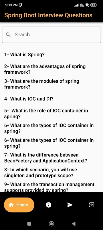 "اسپرنگ بوٹ انٹرویو کے سوالات" ایک خصوصیت سے بھرپور موبائل ایپلیکیشن ہے جو طلباء، ملازمت کے متلاشیوں، اور پیشہ ور افراد کو اسپرنگ بوٹ پر فوکس کرتے ہوئے انٹرویو کی تیاری میں مدد کرنے کے لیے ڈیزائن کی گئی ہے۔ 150 سے زیادہ سوالات کے وسیع مجموعے کے ساتھ، یہ ایپ کلاؤڈ کمپیوٹنگ سے متعلق موضوعات کے وسیع دائرے کا احاطہ کرتی ہے تاکہ صارفین کو ان کے علم کو بڑھانے اور انٹرویو کے دوران ان کے اعتماد کو بڑھانے میں مدد ملے۔