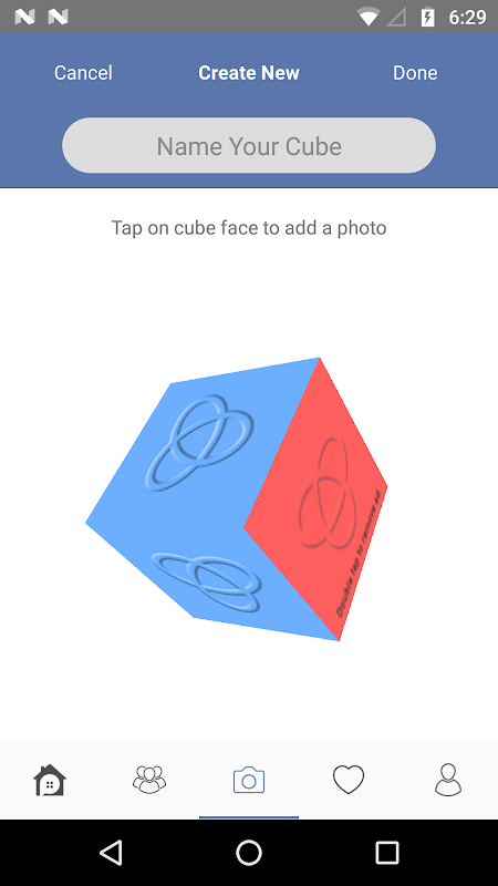 This application also enables user to create and share event & memories in a three dimensional media format. User will be able to share/Comment/like to cube. User can also create Cube with image and that post will be show to his friend.