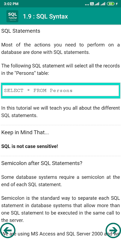 SQL Tutorial APK معلومات