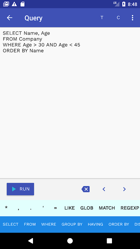 A demo database is included so you can practice any query and learn SQL language.