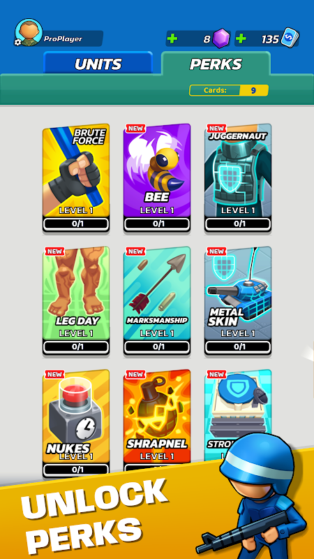 اپنی فوج کو بہتر بنائیں، طاقتور سپاہیوں اور مہارتوں کو غیر مقفل کریں، زیادہ سے زیادہ اثر کے لیے اپنی حکمت عملی تیار کریں۔