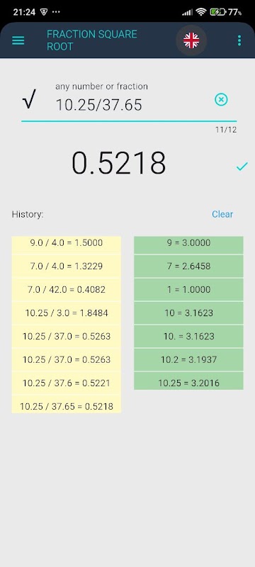 کے پرانے ورژن Fraction Square Root Calculato