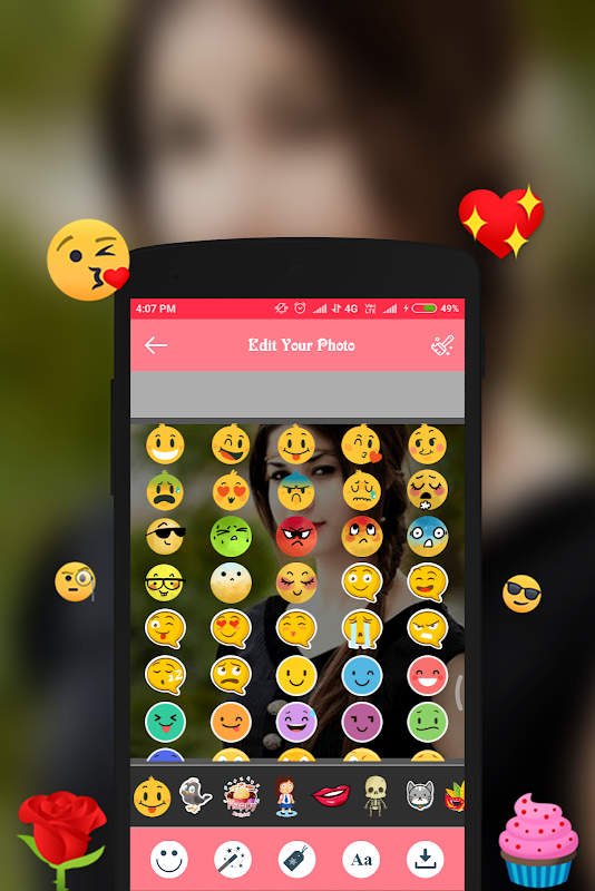 ✔ Pick your favorite filter, blur background, sticker, Emoji from the wide collection