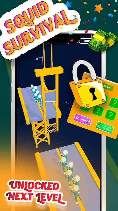 The Squid Survival Shooting Games feature Games such as Red Light, Green Light. Be sure not to miss the final squid survival game, which is a real roller-coaster. In this Squid Game - New Survival Challenge (UnOfficial) a man with a gun will appear throughout the squid survival game at any time to kill you in this stickman ragdoll game. The only way to get out of this hell is to win the squid survival games.