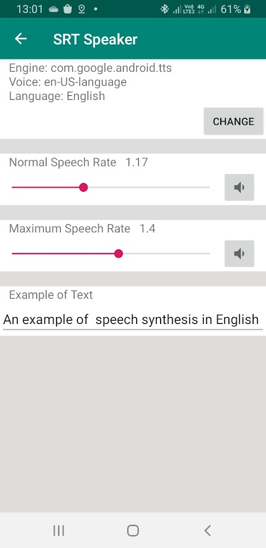 ایپ خود بخود اسپیچ ریٹ اور سب ٹائٹلز کی ٹائم باؤنڈنگ کو ایڈجسٹ کر سکتی ہے اور تیار کردہ آڈیو فائل کے ساتھ نئی srt فائل کو محفوظ کر سکتی ہے۔