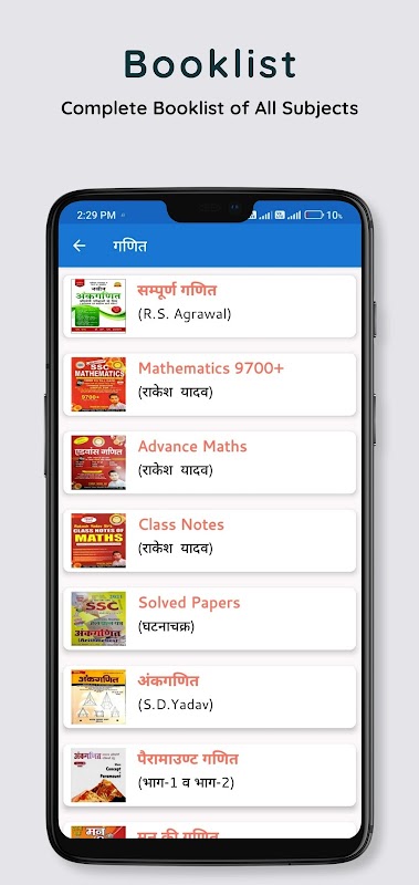 • ریاضی- R.S. اگروال ریاضی، راکیش یادو ایس ایس سی ریاضی 9700++، راکیش یادو ایڈوانس میتھس، راکیش یادو کلاس نوٹس، گھٹنا چکر ایس ایس سی حل شدہ پیپرز ریاضی، ایس ڈی۔ یادو ریاضی، پیراماؤنٹ میتھس، گھٹنا چکر مان کی گنیت