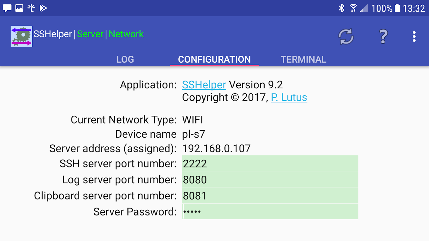 The SSHelper Home Page is located at http://arachnoid.com/android/SSHelper -- visit for more information and configuration tips.