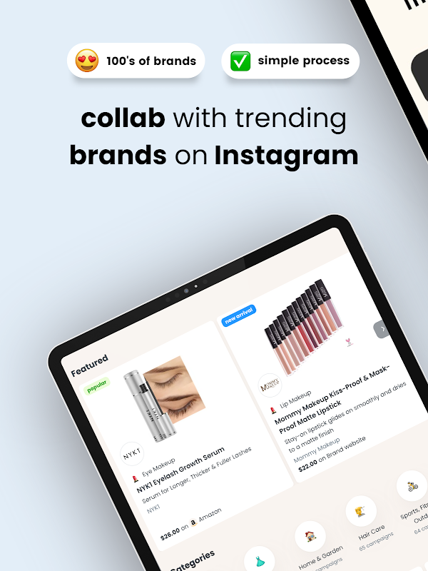 • فوری میچ میکنگ: سرفہرست برانڈز کے ساتھ جوڑا بنائیں جو آپ کے متاثر کن طرز زندگی اور ترجیحات سے میل کھاتے ہیں۔ چاہے یہ میک اپ، جلد کی دیکھ بھال، فیشن، یا گھر ہو - اپنی پسند کی فری بی ڈیلز تلاش کریں اور ایک اثر انگیز کے طور پر طویل مدتی برانڈ ایمبیسیڈر/ ملحقہ تعلقات بنائیں!