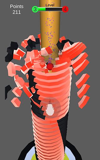 twisted stack is very hard to break. Save stack ball bounce from the wrong color stack. just hold the ballfall at right stack and ball will cut the full 3d stack tower in seconds. Just drop ball on the right point. You will get twist when levels become more harder. hit twisted stacks level need more accuracy and focus to reach the bottom of the tower.