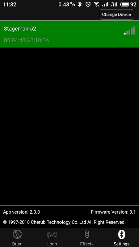 This APP allows user to use built-in drum patterns and looper function of stageman acoustic amplifier with bluetooth. User also can control the effect parameters of the amplifier, such as rate and depth of chorus and reverb. Each channel has individual effects can be controlled by APP, Channel 1 for acoustic guitar and Channel 2 for vocal. A total of 20 drum patterns and 60 seconds looper can be used simultaneously.