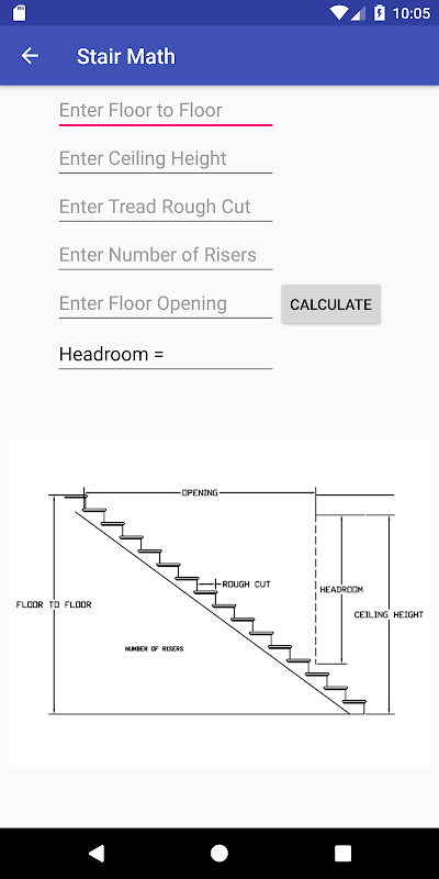 Helps calculate various dimensions that assist in the design of stair cases.