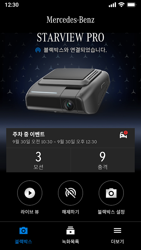 آپ اپنے اسمارٹ فون پر مرسڈیز بینز گاڑی میں نصب بلیک باکس (STARVIEW PRO) کے فرنٹ/رئیر کیمرہ کی ریئل ٹائم اسکرین چیک کر سکتے ہیں۔
