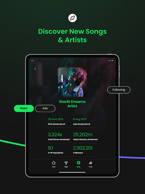 Statify آپ کو نئی موسیقی دریافت کرنے میں بھی مدد کرتا ہے۔ ایسے گانے اور فنکار دریافت کریں جو آپ کے ذوق کے مطابق ہوں اور نئے پسندیدہ تلاش کرنے کے لیے ذاتی نوعیت کی تجاویز حاصل کریں۔