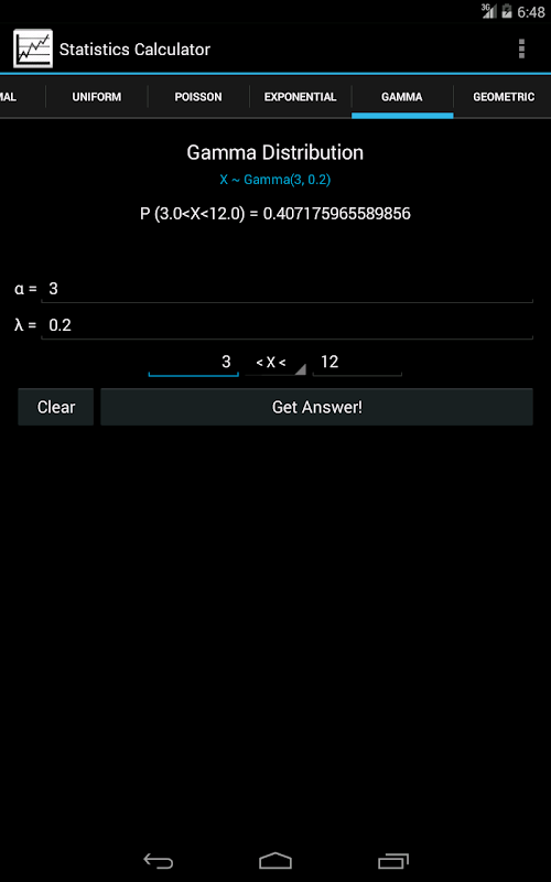 Taking a statistics course in high school or university? Then this is the app you'll definitely be wanting to check your answers. With its rich and easy to use user interface Statistics Calculator will help you find probabilities of random variables which follow certain probability distributions.