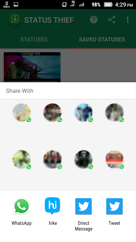 Status thief, application to save and share other's whaatsapp status.