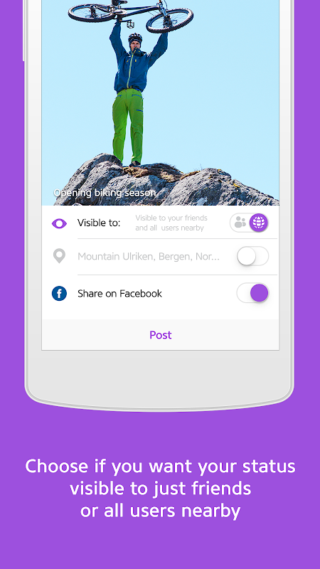 It’s up to you if you want to share your location or status with only friends or with all users nearby.