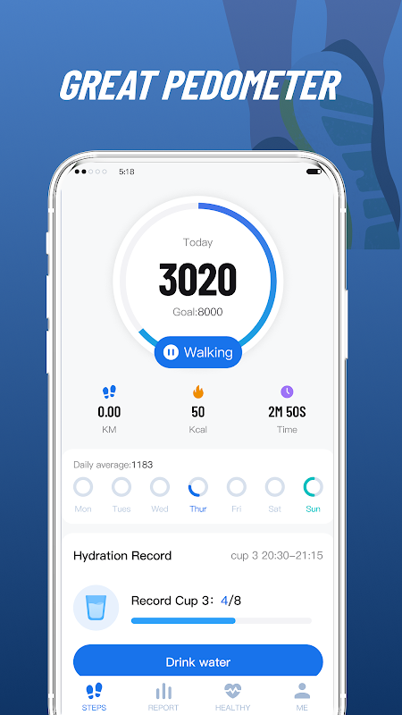 This step counter uses the phone's built-in sensor to count your steps. You can track calories burned and walking duration with Step Counter - My Pedometer. You can also use this app without draining your battery because it doesn't need GPS to function.