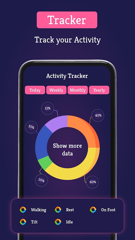 آپ کا واک ٹریکر ڈیٹا واضح گراف میں دکھایا جائے گا۔ آپ اپنے روزانہ، ہفتہ وار اور ماہانہ پیدل چلنے کے اعدادوشمار آسانی سے دیکھ سکتے ہیں۔