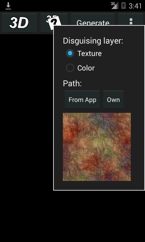 • Configurable parameters: Stereogram size, depth, observation distance, eye distance, resolution in PPI