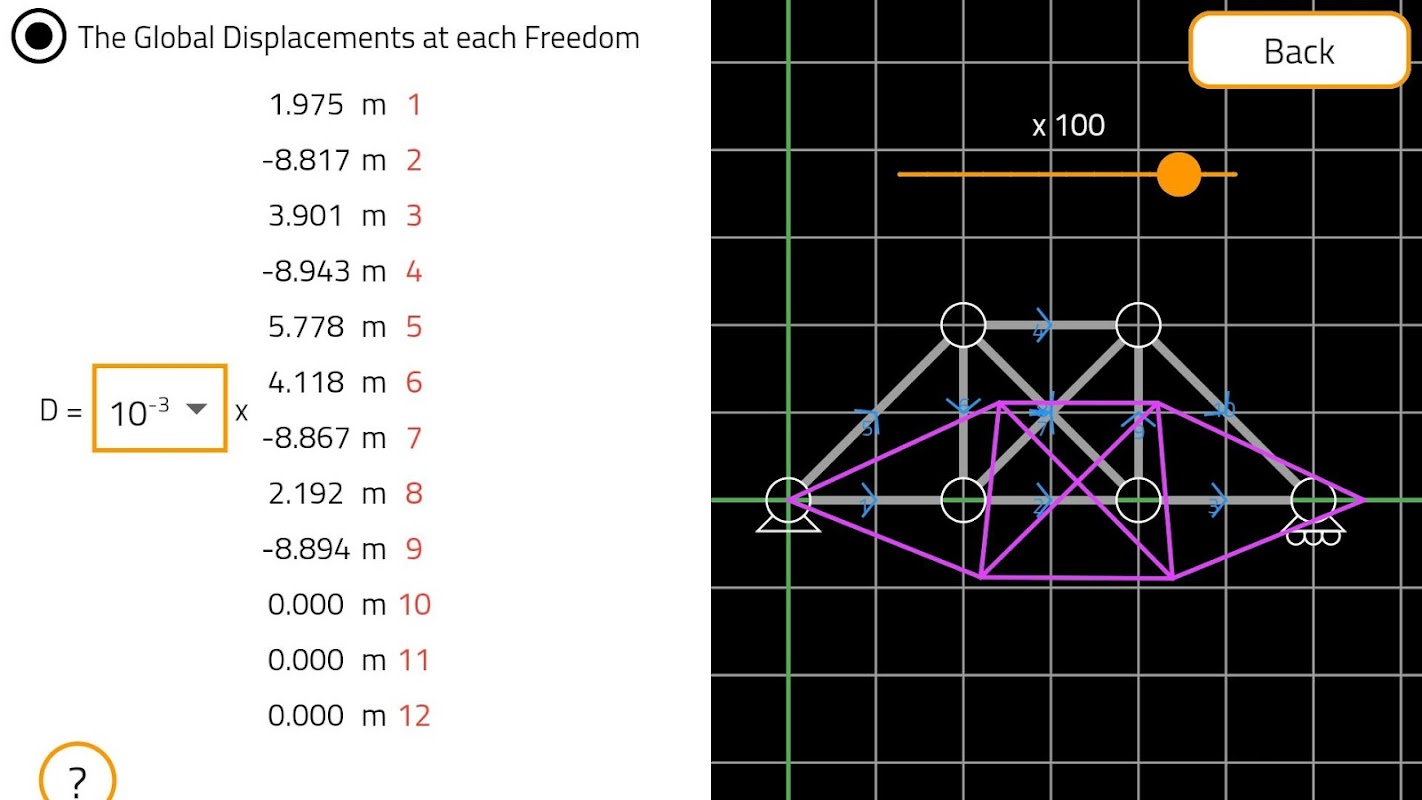 ایپ اس بات کا تعین کرنے میں اہل ہے کہ آیا ڈھانچے کی قسم ٹراس ، بیم یا فریم ہے۔ حل میں شامل ہیں: