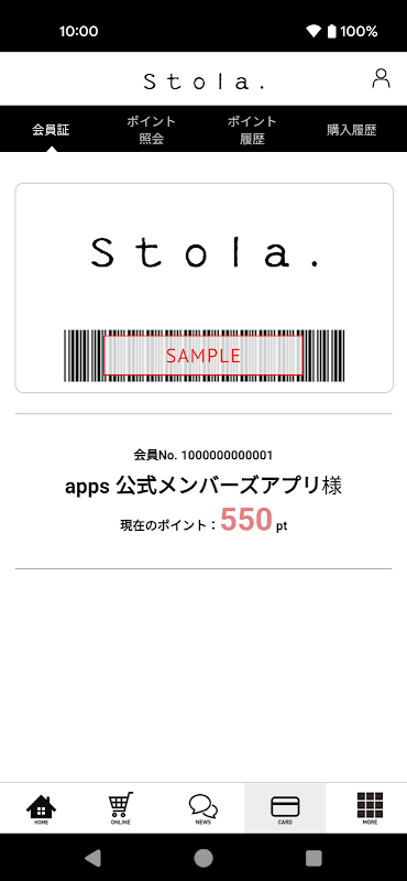 اسٹولا کی آفیشل اسمارٹ فون ایپ۔ اسے ہر اسٹولا میں ممبرشپ کارڈ کے طور پر استعمال کیا جاسکتا ہے۔ اسٹور۔