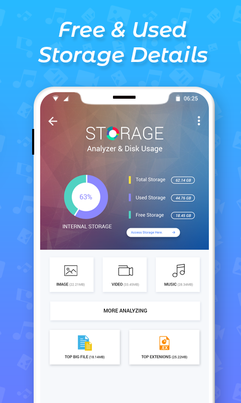 * Analyze all types of files including Image Files, Video Files, Music File, Apps & APKs.
