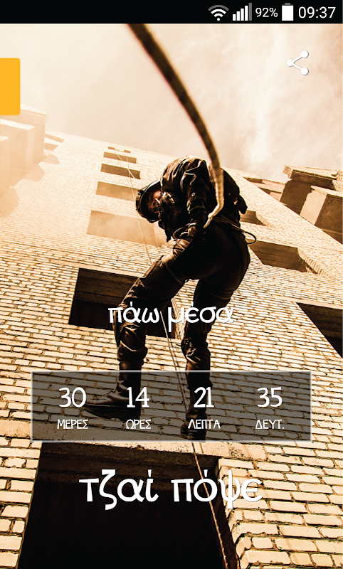 For the first time ever, the Bank of Cyprus has developed a loyal app buddy for soldiers, which will be by your side throughout your service. As soon as you download it and customize it with your details, stratapp will begin a countdown to your enlistment day, and once you are in the army, the app will start a countdown till you are discharged. You can add and subtract days based on any disciplinary enforcement days you have been given or have been dismissed of, and stratapp will update your results. Share your personal customized countdown results with your friends on Facebook, and get ready for the experience of a lifetime!