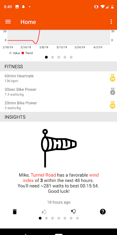 آپ کے فٹنس اعداد و شمار کو سمجھنے کی مثال میں آپ کو مطلع کرنا بھی شامل ہے جب آپ کو گذشتہ 8 ہفتوں میں چوٹی کی حد تکمیل (مثلا bike بہترین موٹر سائیکل کی طاقت) 5 منٹ اور چارٹس میں یہ بیان کیا گیا ہے کہ آپ کس متغیر کو جمع کرتے ہیں (جیسے اونچائی) آپ کی دہلیز کو متاثر کرتی ہے۔