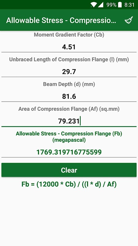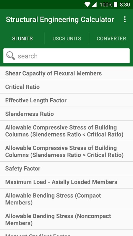 سٹرکچرل انجینئرنگ کیلکولیٹر میں 90 کیلکولیٹر اور کنورٹرس شامل ہیں ، جو تیزی سے اور آسانی سے مختلف سٹرکچرل اور سول انجینئرنگ پیرامیٹرز کا حساب کتاب اور تبدیل کرسکتے ہیں۔ خودکار اور درست حساب اور ہر یونٹ اور قدر میں بدلاؤ کے ساتھ تبادلوں۔