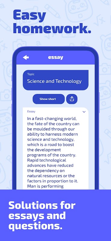 Study AI ایک جدید ترین موبائل ایپلی کیشن ہے جو مصنوعی ذہانت (AI) کی طاقت کو بروئے کار لاتی ہے تاکہ آپ سائنسی کاموں تک پہنچنے کے انداز میں انقلاب برپا کر سکیں۔ Study AI کے ساتھ، آپ آسانی سے الجبرا، کیمسٹری، فزکس یا دیگر سائنسی مضامین کے شعبوں سے کسی بھی پیچیدہ مسئلے کی تصویر کھینچ سکتے ہیں، اور باقی کام ایپ کو کرنے دیں۔ یہ آپ کی جیب میں ذاتی ٹیوٹر رکھنے کی طرح ہے، کسی بھی وقت، کہیں بھی دستیاب ہے۔