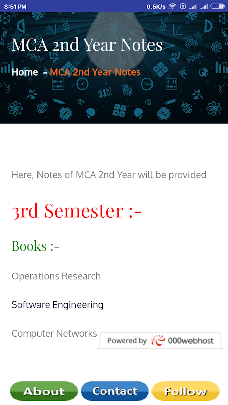 I have created this app to help MCA students in their studies. This app provides several helpful youtube videos for mca students with study material. It's the Best app for MCA Students. Because Nowadays, Students are not able to make notes and that can affect their Studies. This app also helps students of B.Sc.Mechanical engineering.(Hons.), M.Sc. Mech. Engg. (Distinction) in one subject which is Operations Research.