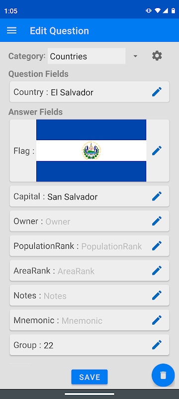 اسکول یا ٹریویا کے لیے انتہائی لچکدار فلیش کارڈ اسٹڈی ایپ۔ بلٹ ان کیٹیگریز میں ورلڈ کیپٹلز، ورلڈ فلیگ، کلاسک آرٹ، ایلیمنٹس، سپر باؤل چیمپئنز، یو ایس بیس بال ورلڈ سیریز ونر، اور آسکر ٹریویا شامل ہیں...لیکن گوگل شیٹس سے براہ راست اپنے موضوعات کو درآمد کرنا آسان ہے!