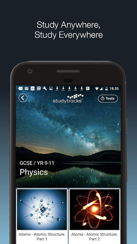 Studytracks works by turning the core syllabus (Math, Chemistry, Physics, Biology, English, History and Geography) into easy to remember ‘hooks’. These hooks get suck in your head just like the lyrics of a song. This helps the retention and recollection. What’s more you can test yourself in-app to see just how much you can recall.