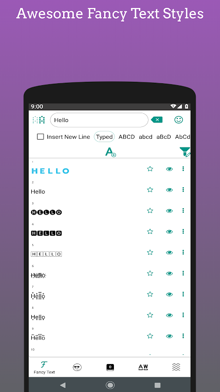 ایپلیکیشن 140+ فینسی ٹیکسٹ اسٹائلز پر مشتمل ہے اور آپ اپنی مرضی کے مطابق فینسی ٹیکسٹ کریٹر فیچر کا استعمال کرکے ایپلی کیشن میں اپنا لامحدود اسٹائل بنا سکتے ہیں۔