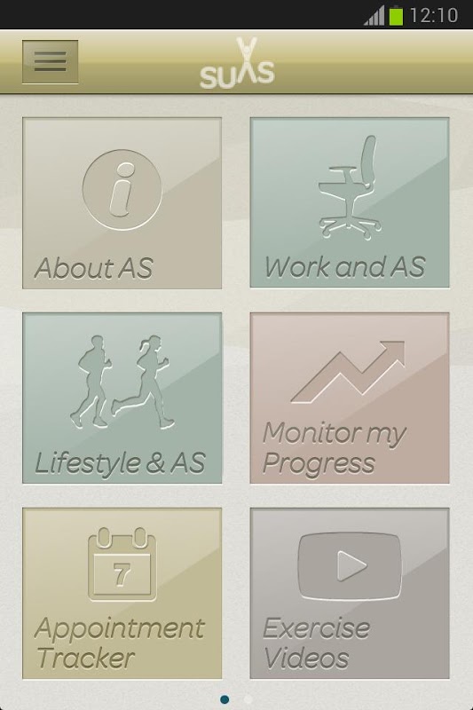 SUAS is an educational resource for people living with the rheumatic condition known as Ankylosing Spondylitis. SUAS provides the user with information on all aspects of the condition and its treatment; including everything from medicinal treatments to tips on maintaining good posture and what exercise to undertake. This app also contains an exercise video library in which the user can learn the best daily exercises to help ease their condition. All videos have been scripted and performed under the strict supervision of medical professionals.