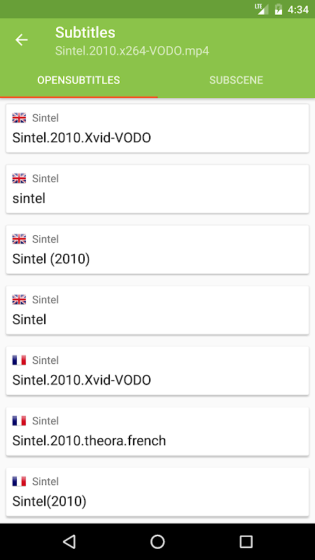 This application scans your phone for video files and allows you to search and download subtitles for any selected video.