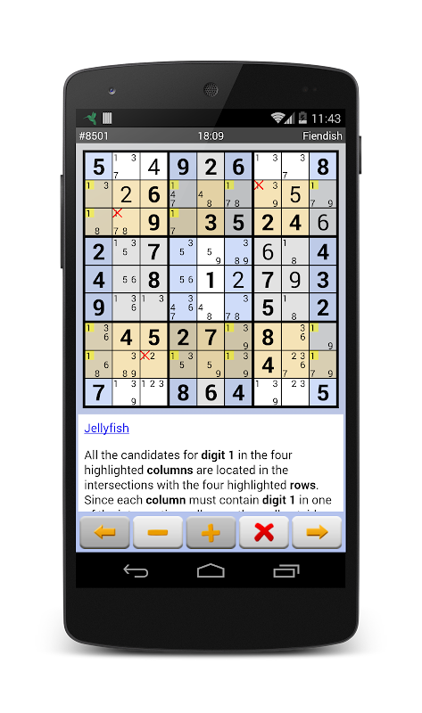 ★ Analysis functionality to rate the difficulty of a Sudoku puzzle and to get a detailed list of required solving techniques