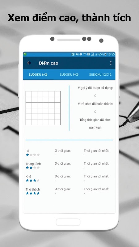 - Chơi Sudoku cải tiến 6x6, 12x12.