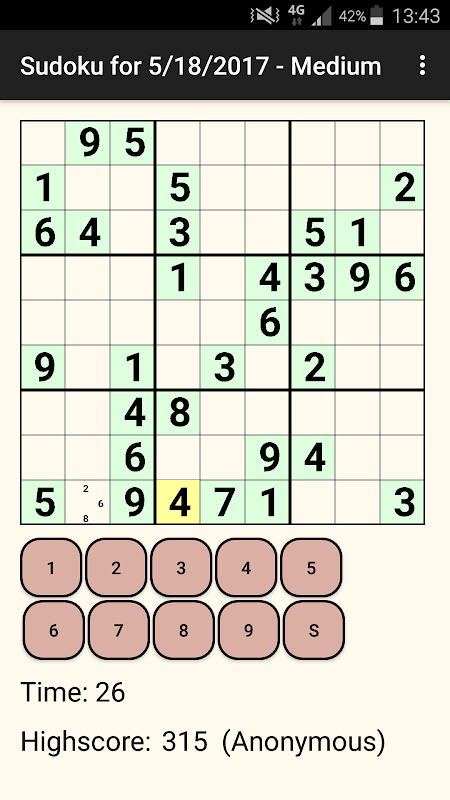 Solve the daily new Sudokus in different difficulties and compare your highscores