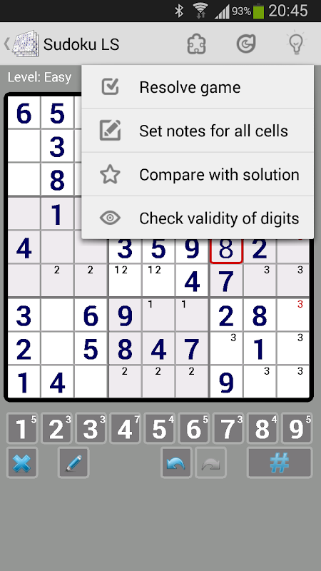 4. Enable or disable the entry in cell notes, when the digit contradicts the previously entered numbers.